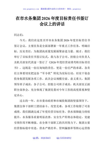 / 在市水务集团2026年度目标责任书签订会议上的讲话