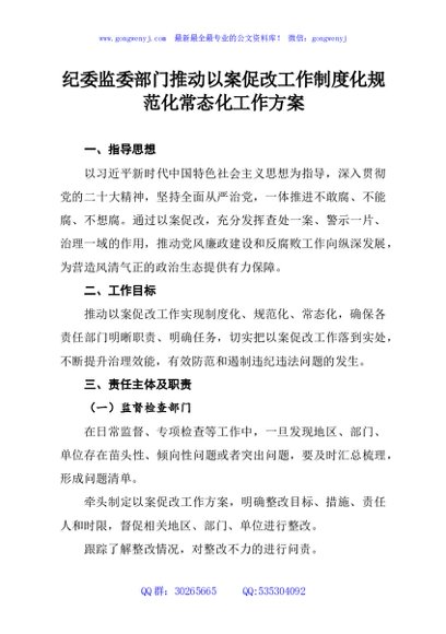 未生成预览图,长按二维码添加 纪委监委部门推动以案促改工作制度化规范化常态化工作方案 - 公文研究
