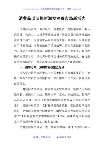 / 消费品以旧换新激发消费市场新活力