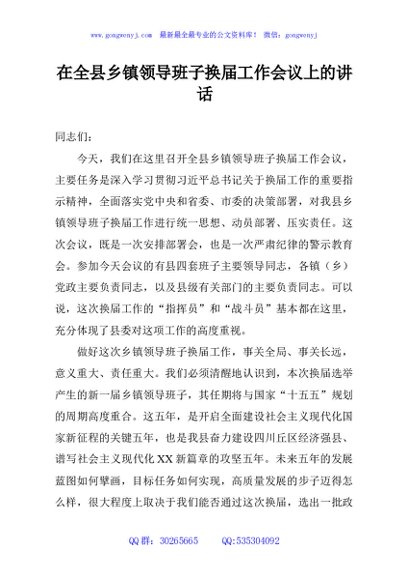 / 在全县乡镇领导班子换届工作会议上的讲话
