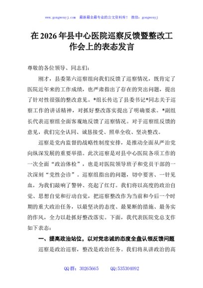 / 在2026年县中心医院巡察反馈暨整改工作会上的表态发言