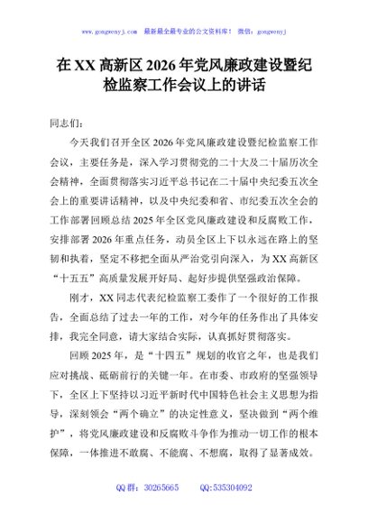 / 在XX高新区2026年党风廉政建设暨纪检监察工作会议上的讲话