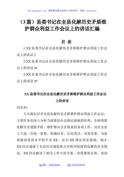 / (3篇)县委书记在全县化解历史矛盾维护群众利益工作会议上的讲话汇编