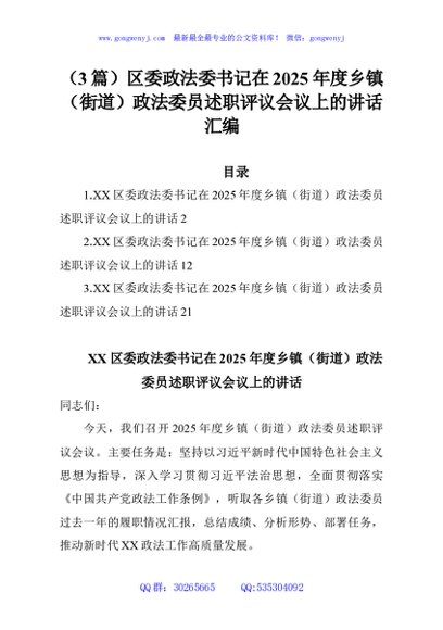 / (3篇)区委政法委书记在2025年度乡镇(街道)政法委员述职评议会议上的讲话汇编