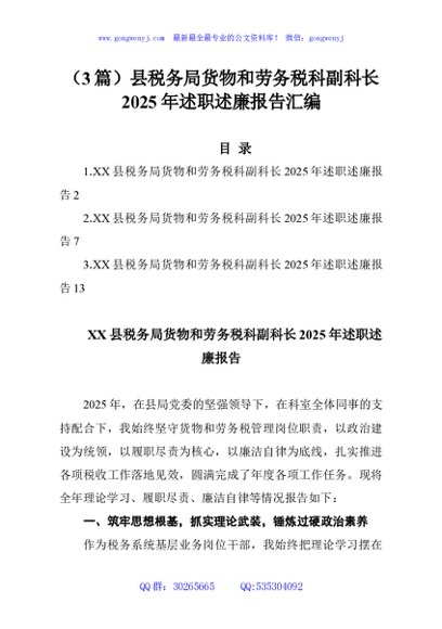 (3篇)县税务局货物和劳务税科副科长2025年述职述廉报告汇编