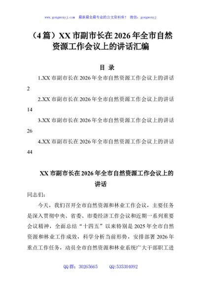 / (4篇)XX市副市长在2026年全市自然资源工作会议上的讲话汇编