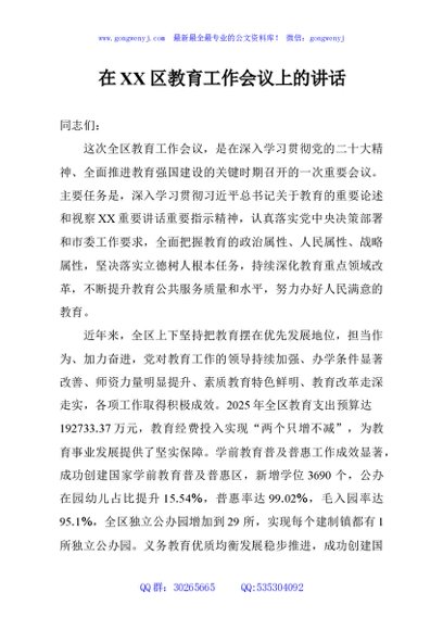 / 在XX区教育工作会议上的讲话