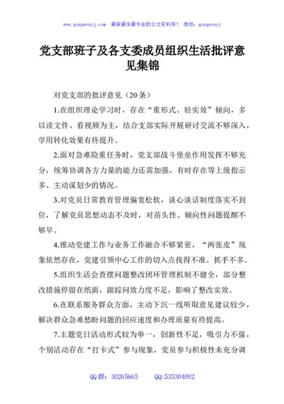 / 党支部班子及各支委成员组织生活批评意见集锦