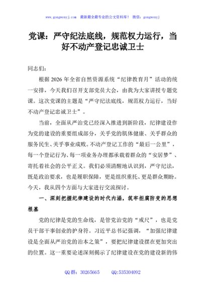 / 党课:严守纪法底线,规范权力运行,当好不动产登记忠诚卫士