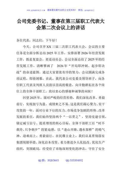 公司党委书记、董事在第三届职工代表大会第二次会议上的讲话