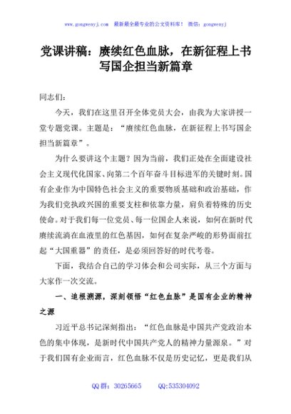 / 党课讲稿:赓续红色血脉,在新征程上书写国企担当新篇章