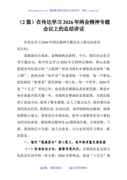 / (2篇)在传达学习2026年两会精神专题会议上的总结讲话