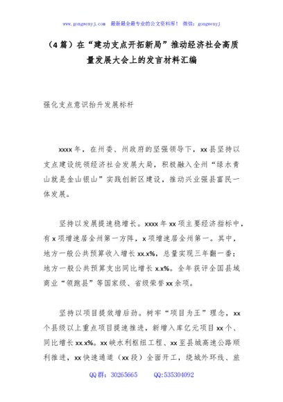 / (4篇)在“建功支点开拓新局”推动经济社会高质量发展大会上的发言材料汇编