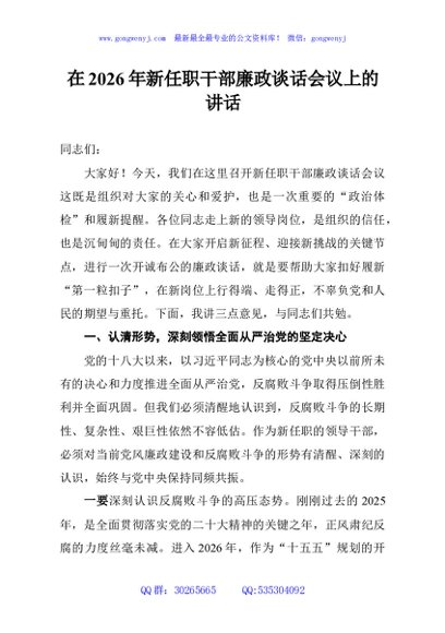 / 在2026年新任职干部廉政谈话会议上的讲话