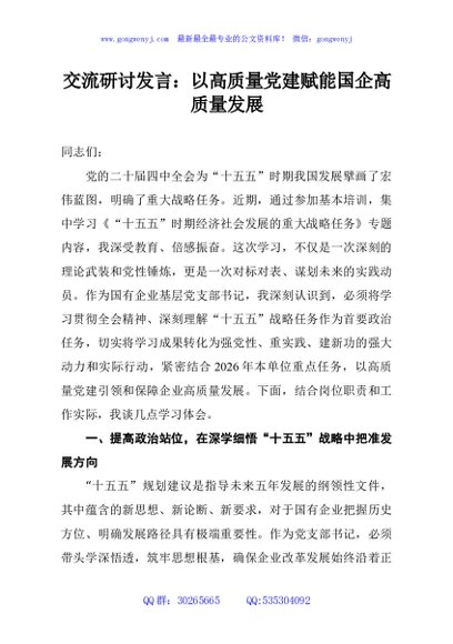/ 交流研讨发言:以高质量党建赋能国企高质量发展