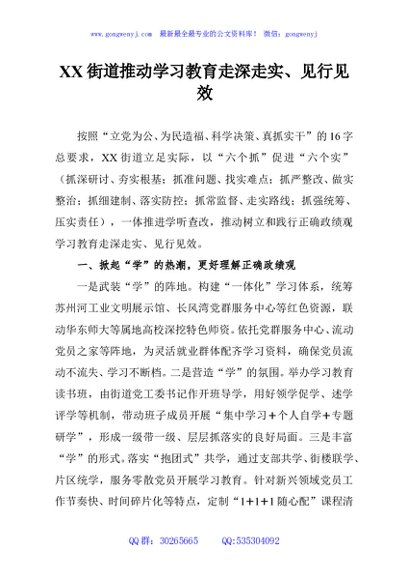 / XX街道推动学习教育走深走实、见行见效