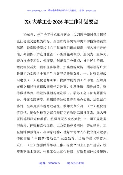 / Xx大学工会2026年工作计划要点