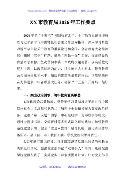 / XX市教育局2026年工作要点