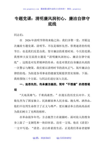 / 专题党课:清明廉风润初心,廉洁自律守底线