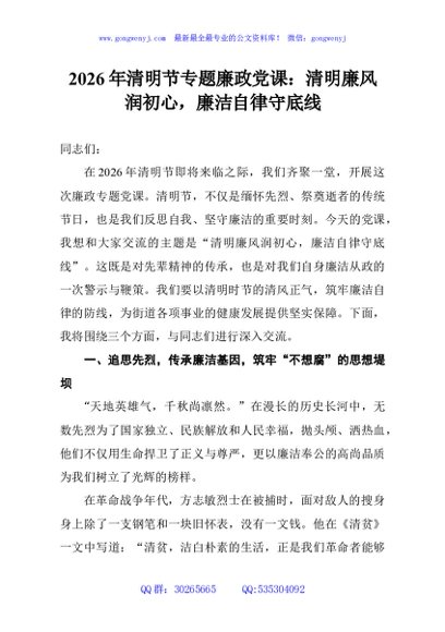 / 2026年清明节专题廉政党课:清明廉风润初心,廉洁自律守底线