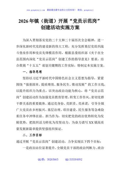 / 2026年镇(街道)开展“党员示范岗”创建活动实施方案