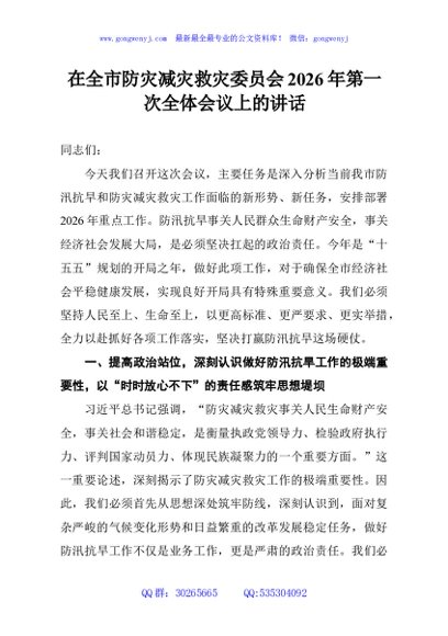 / 在全市防灾减灾救灾委员会2026年第一次全体会议上的讲话
