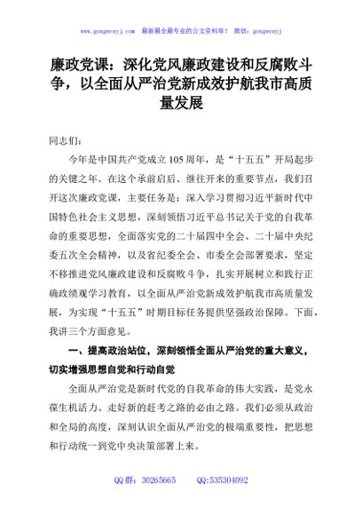 / 廉政党课:深化党风廉政建设和反腐败斗争,以全面从严治党新成效护航我市高质量发展