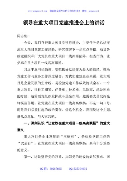 / 领导在重大项目党建推进会上的讲话