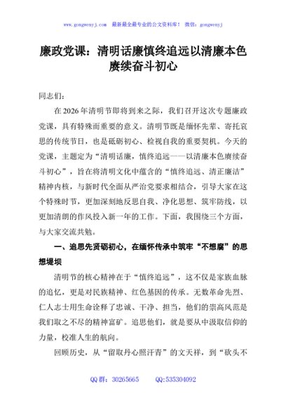 / 廉政党课:清明话廉慎终追远以清廉本色赓续奋斗初心