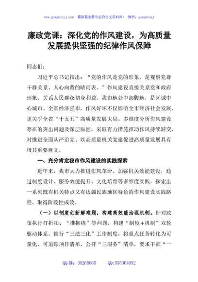 / 廉政党课:深化党的作风建设,为高质量发展提供坚强的纪律作风保障