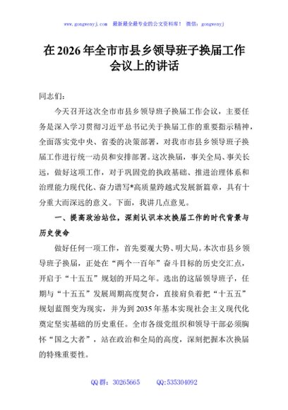 / 在2026年全市市县乡领导班子换届工作会议上的讲话
