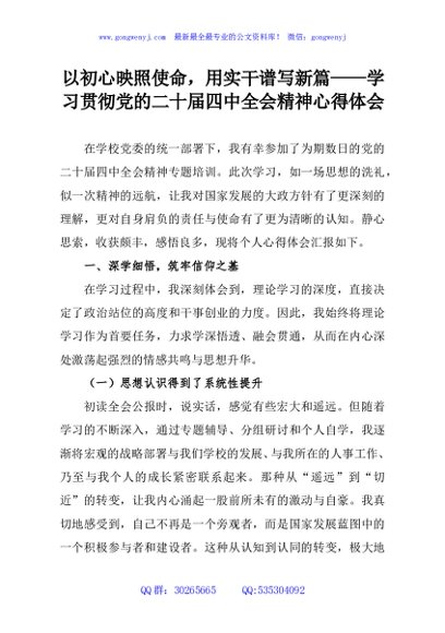 / 以初心映照使命,用实干谱写新篇——学习贯彻党的二十届四中全会精神心得体会