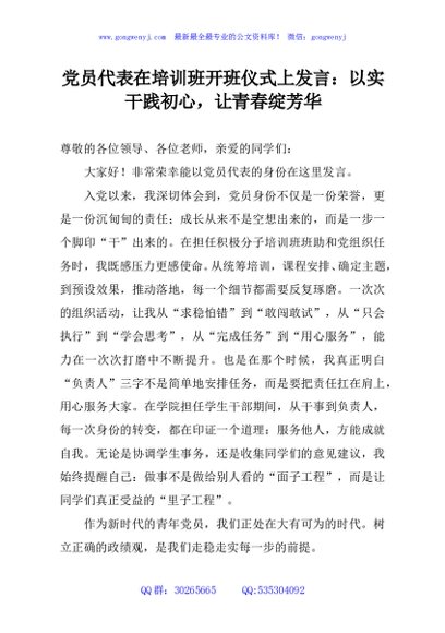 党员代表在培训班开班仪式上发言:以实干践初心,让青春绽芳华