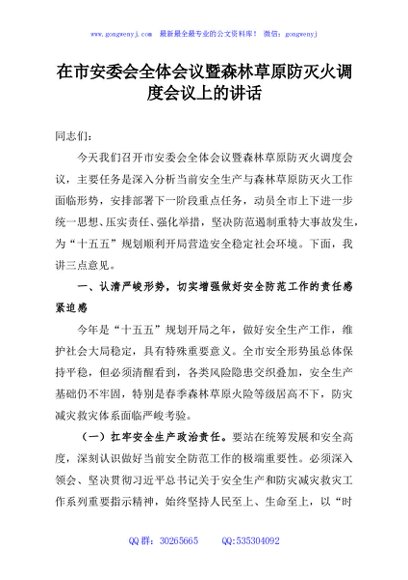 / 在市安委会全体会议暨森林草原防灭火调度会议上的讲话