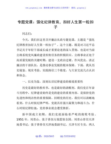 / 党课:强化纪律教育,扣好人生第一粒扣子(公路)
