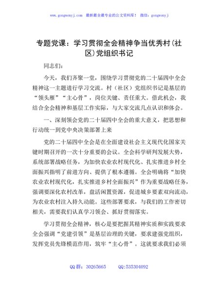 / 党课:学习贯彻四中全会精神争当优秀村(社区)党组织书记