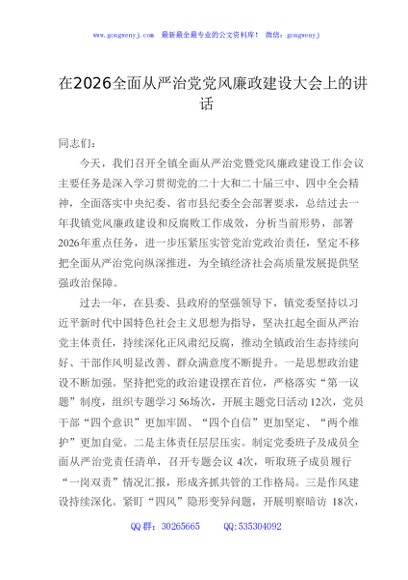 / 在2026全面从严治党党风廉政建设大会上的讲话