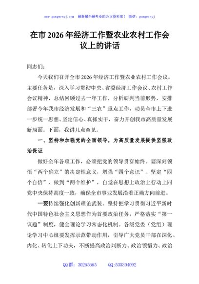 / 在市2026年经济工作暨农业农村工作会议上的讲话