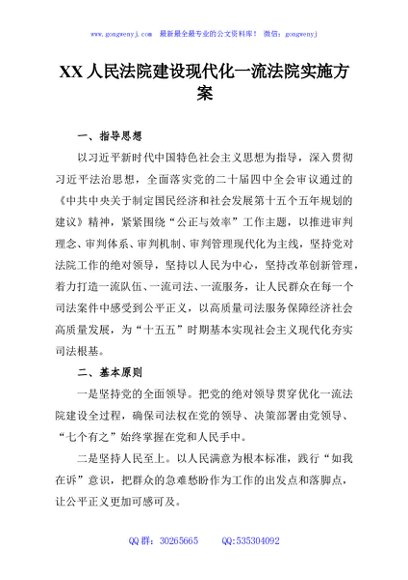 / XX人民法院建设现代化一流法院实施方案