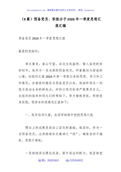 / (9篇)预备党员、积极分子2026年一季度思想汇报汇编