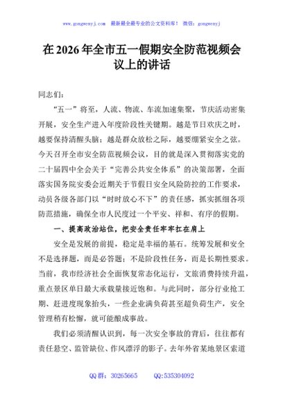 / 在2026年全市五一假期安全防范视频会议上的讲话