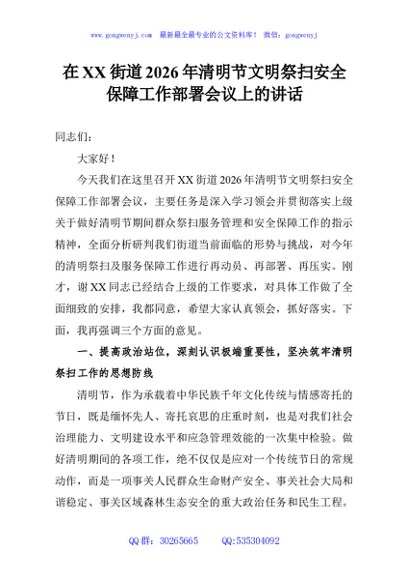 / 在街道2026年清明节文明祭扫安全保障工作部署会议上的讲话
