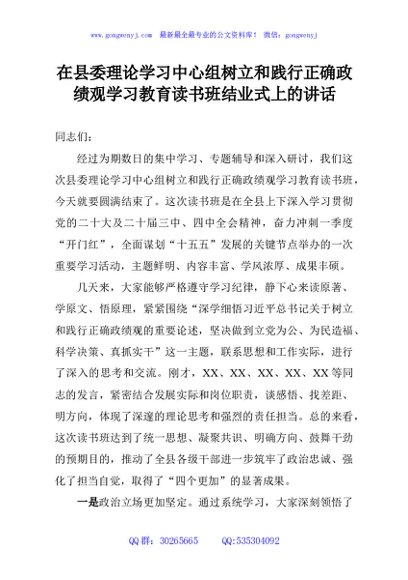 / 在县委理论学习中心组树立和践行正确政绩观学习教育读书班结业式上的讲话