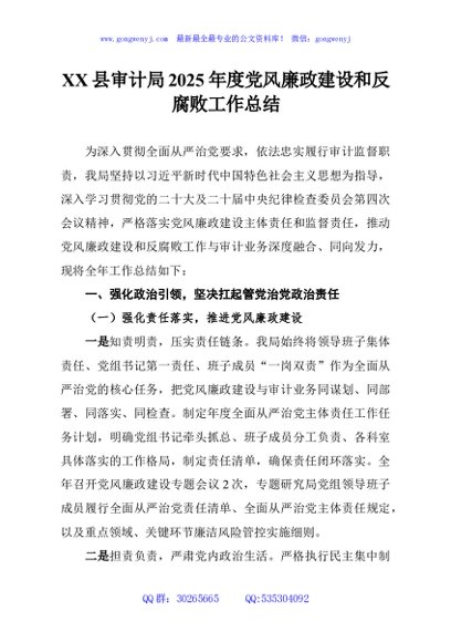 / XX县审计局2025年度党风廉政建设和反腐败工作总结