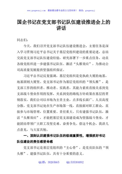 / 国企书记在党支部书记队伍建设推进会上的讲话