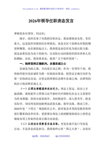 / 2026年领导任职表态发言