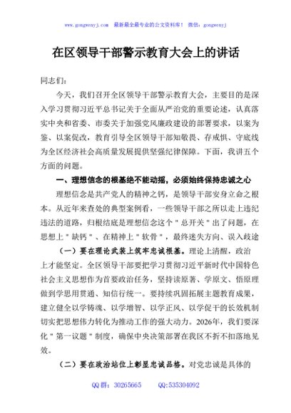 / 在区领导干部警示教育大会上的讲话
