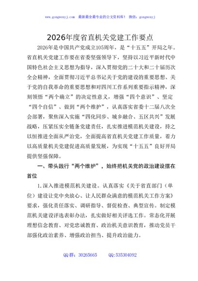 / 2026年度省直机关党建工作要点(含重点任务清单。党建计划)