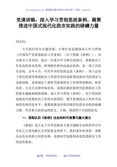 / 党课讲稿:深入学习贯彻思想政治工作条例,凝聚推进中国式现代化我市实践的磅礴力量
