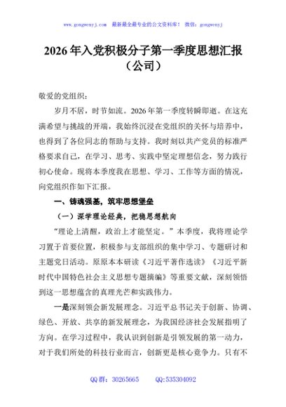 / 2026年入党积极分子第一季度思想汇报(公司)